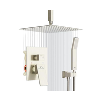 Moderne Regendouche Systeem Geborsteld Nikkel Plafond Gemonteerde Combo Set Dubbele Handgreep Hoge Druk 12 Inch Douche