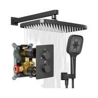 Moderne Enkele Handgreep Thermostatische Douchekop Systeem 12 Inch Regenkraan Set Handheld Spray Combo Ruw-In Ventiel Massief